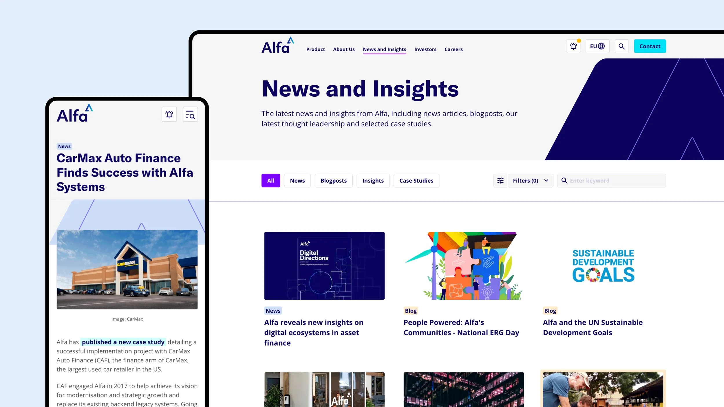 We transformed News and Insights into a central hub of written material, adopting a firmer position on the platform to enhance Alfa’s dynamic portfolio of content.