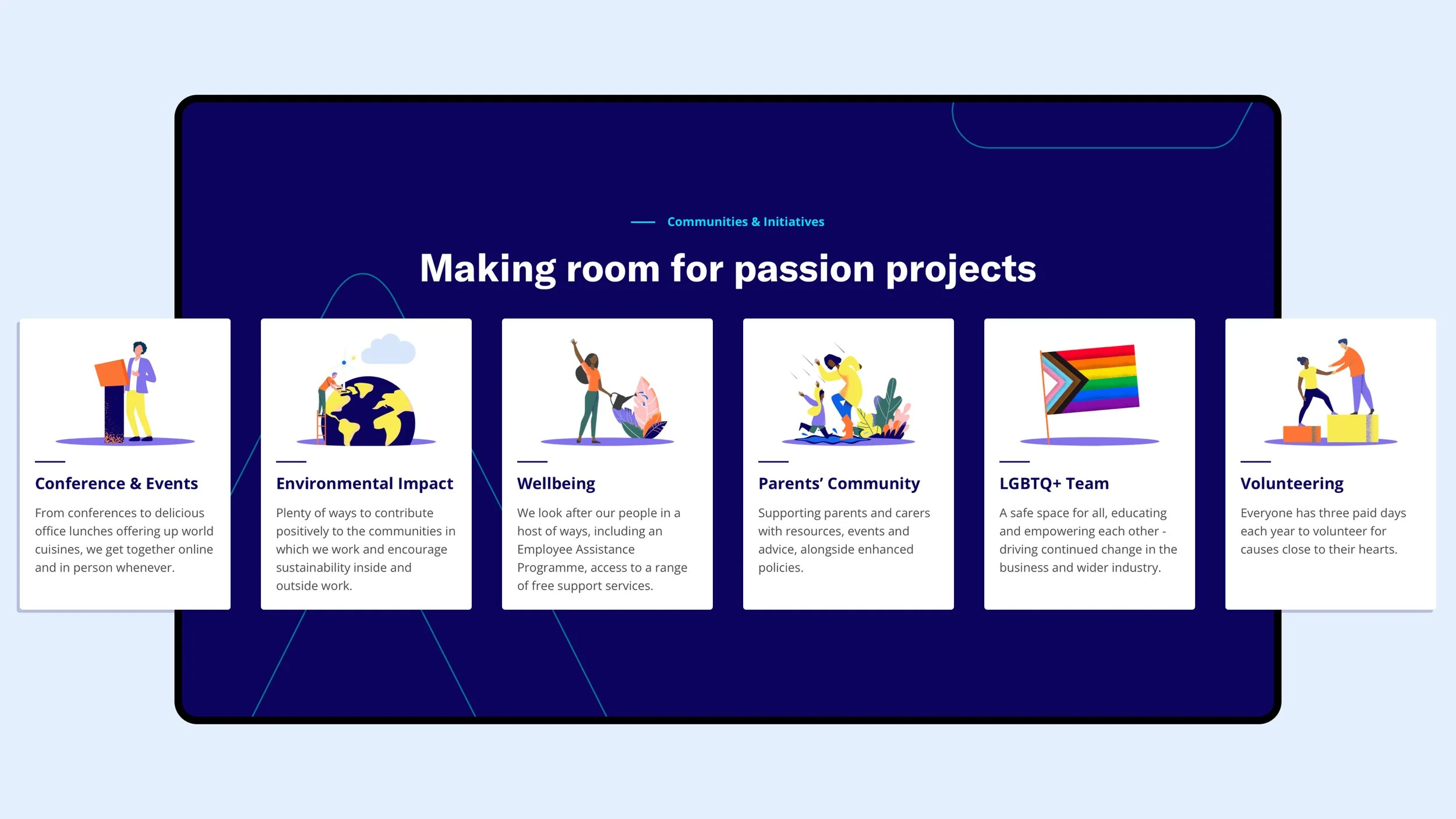 We wanted to introduce product pages that were exciting and visually pleasing. It was important to portray the people at the heart of the product at the forefront - whilst bringing the software’s capabilities to life through animated illustration.