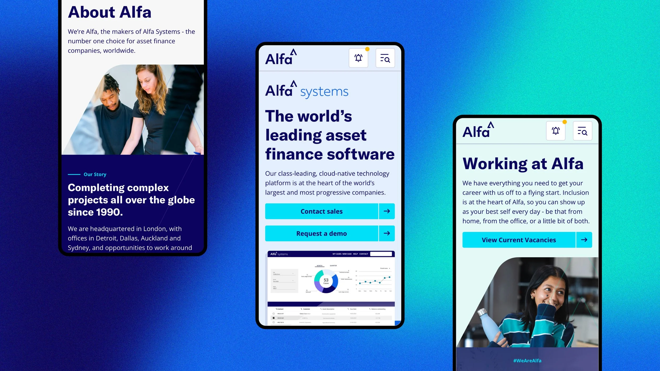 We achieved this by successfully redefining their brand identity as well as producing an entirely redesigned website. The concept was to clarify who Alfa are and what they do by defining three areas, ‘company’, ‘product’ and ‘careers’.