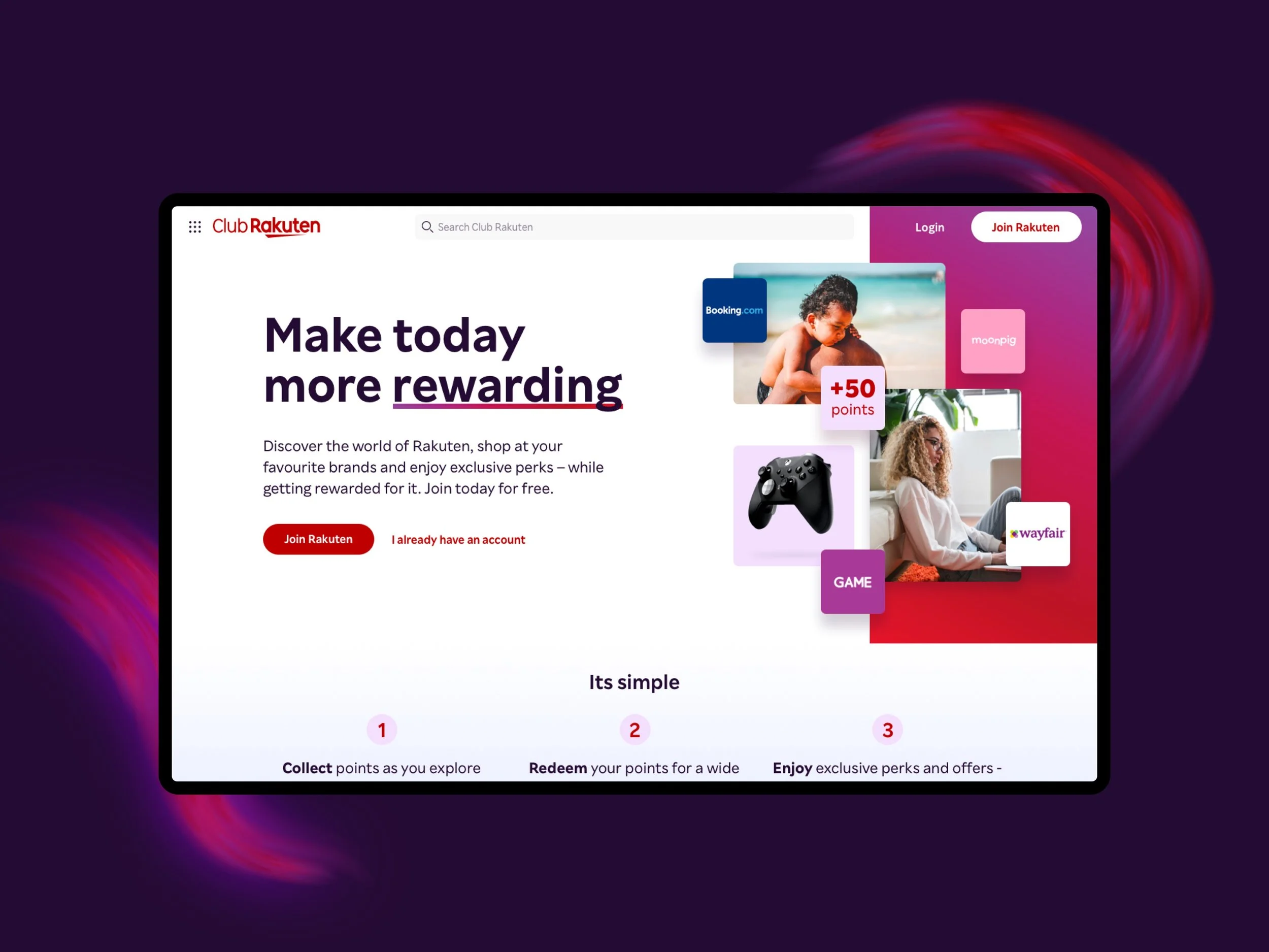 Rakuten was looking to re-launch their membership programme in the UK and Europe. Their differentiating factor is that they reward customers who purchase through their website with points, which can be redeemed for gift cards, movies or other perks. Whilst a Japanese digital powerhouse in Asia, they were less-known in Europe. Therefore, our challenge was to simplify their membership offering with a new digital experience.